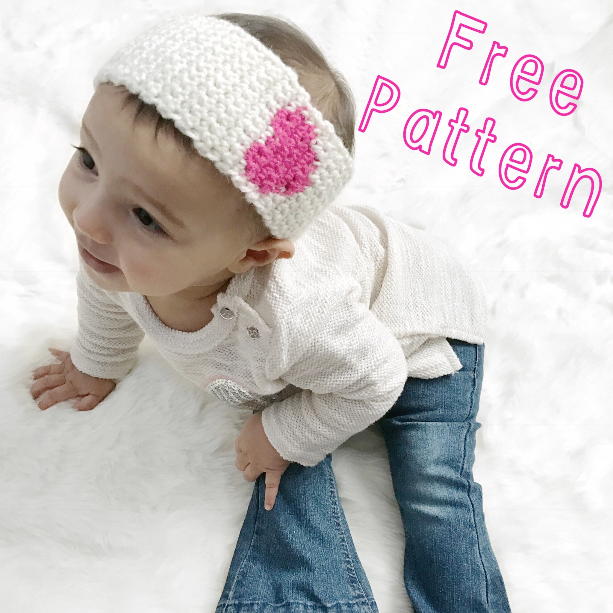 A quick and easy heart headband pattern to make for your little ones for Valentine’s Day (or any day!) It’s really cute and also a great pattern to practice color changes! You can easily adjust this headband to fit a larger head by adding more chains in the beginning and end. I chained enough so it would fit my  9 month old daughter.